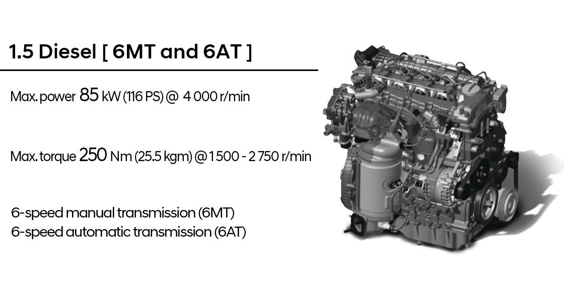Max. Power(ps/rpm) : 85 kW (116 PS) @ 4 000 r/min